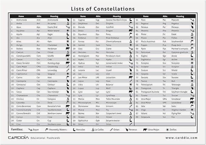 - ✅ 88 Flashcards: Cover all astronomical constellations from the northern and southern hemispheres.