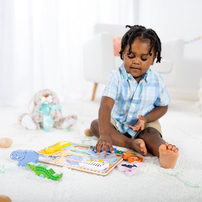 Melissa & Doug Safari Wooden Chunky Puzzle with Wild Animal Theme (8 Pcs) Wooden Puzzles for Toddlers Ages 3+ - FSC Certified