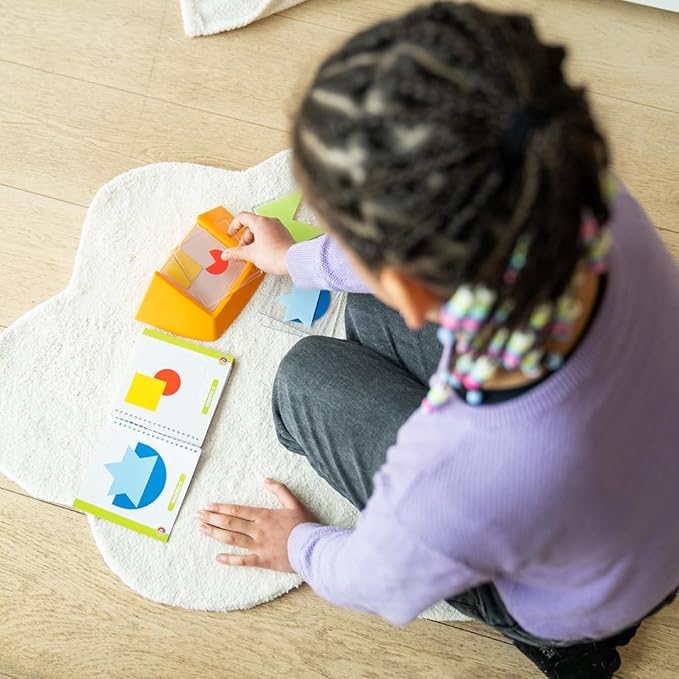 - Puzzle Includes: game board (3D base), 18 transparent puzzle pieces with different shapes and colors, booklet with 100 challenges.