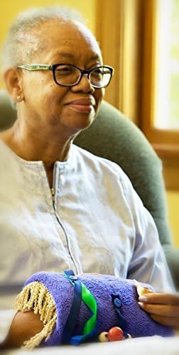 - SENSORY EXPERIENCE: Twiddle Muff Dementia Products for Elderly offer users a unique and enjoyable sensory activity. There is a soft-plastic orbit ball tethered on the inside; exterior attached gadgets include a loop of multi-colored wooden beads, textured ribbons, a sealed buckskin crackle pouch, and a hook and loop pull patch to exercise hands and mind alike.
