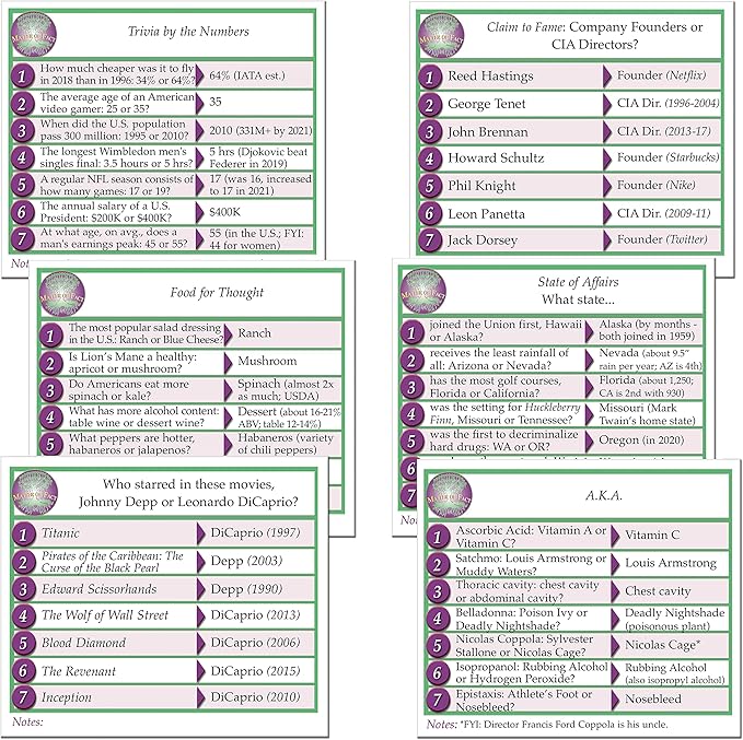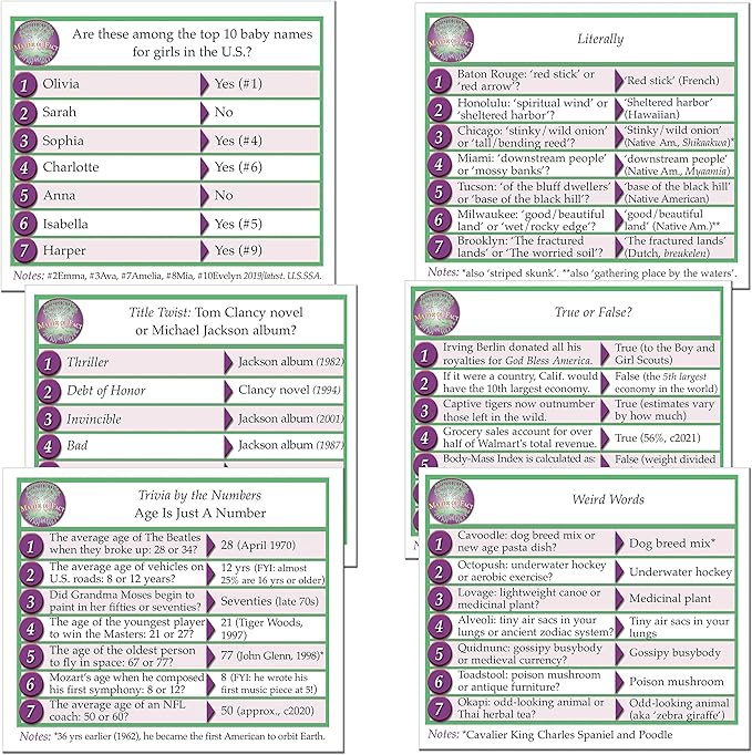 - Challenges range from clever puzzles like 'Claim to Fame' and 'All Mixed Up' to fun trivia like 'Trivia by the Numbers' and 'Lost in Translation.' History, movies, science, current events and more —all keep you on your toes.