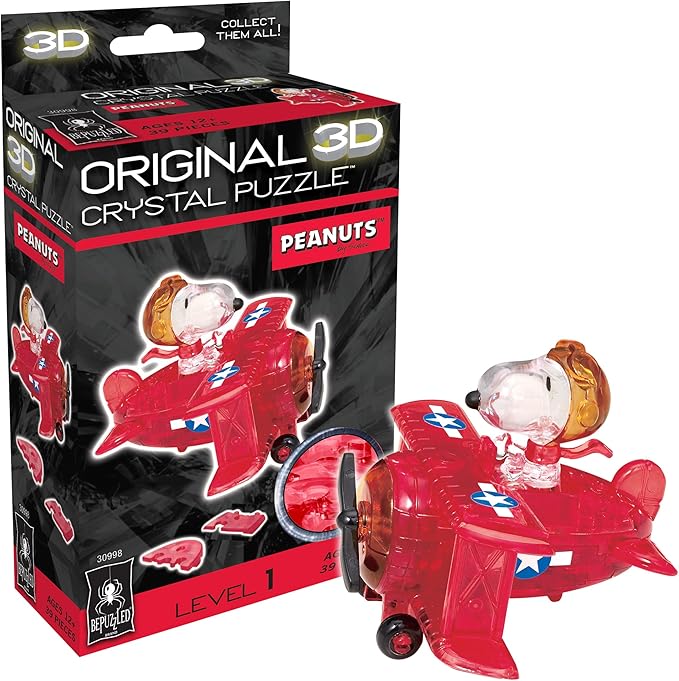 BePuzzled, Peanuts Snoopy Flying Ace Original 3D Crystal Puzzle, Perfect for Puzzlers Ages 12 and Up, Challenging to Complete and Beautiful to Display, Collect Them All