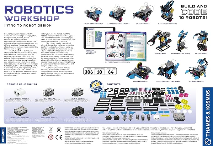 Thames & Kosmos Robotics Workshop Model Building & Science Experiment Kit | Build & Program 10 Robots with Ultrasonic Sensors | Program & Control with App for iOS & Android