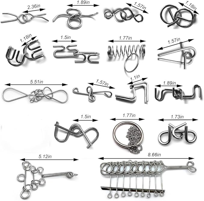 Zooshine 18 Sets Metal Brain Puzzles Teasers IQ Toys,Metal Puzzles Games for Adults Kids