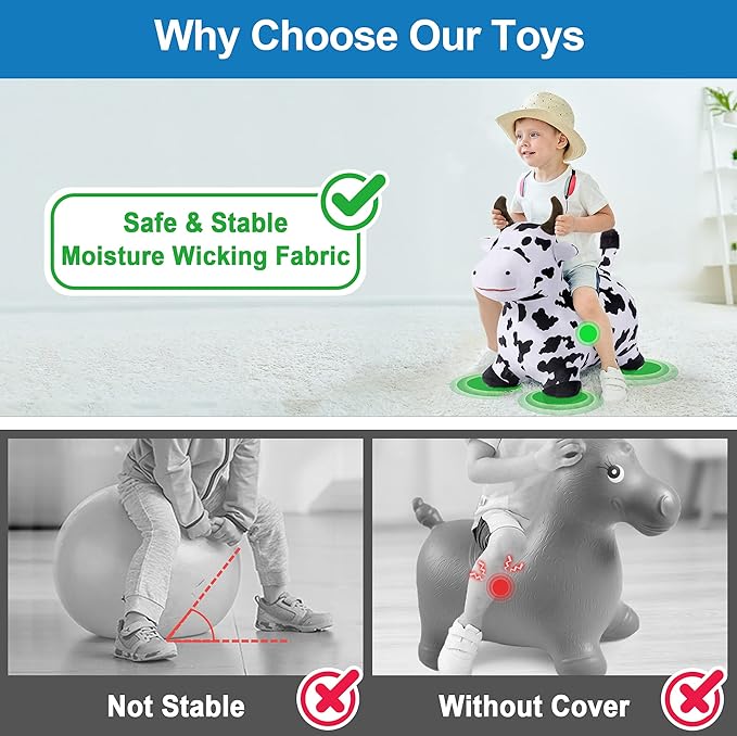 - High Grade: Inflatable hopper with removeable plush cover is safe and fun for your children.