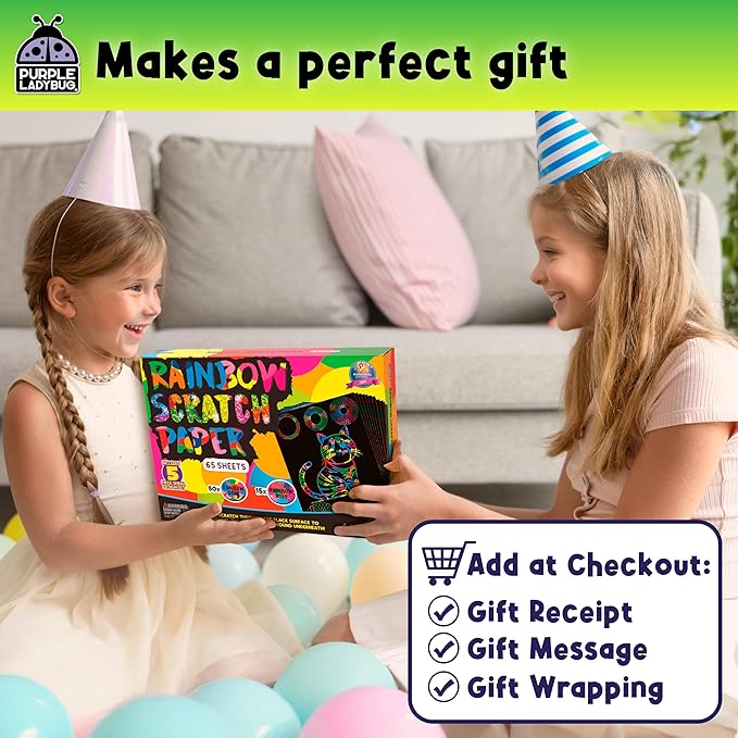 PURPLE LADYBUG Rainbow Scratch Art Paper, 79 PCS Creative Drawing Paper & Stencils - Arts and Crafts for Ages 4-12, Kids Craft Activity Set for Halloween, Christmas Gift, Birthday Party Games