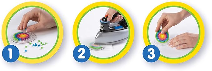 - Includes (1) plastic bucket that contains (8500) colorful beads, (2) pegboards, ironing paper and a pattern sheet