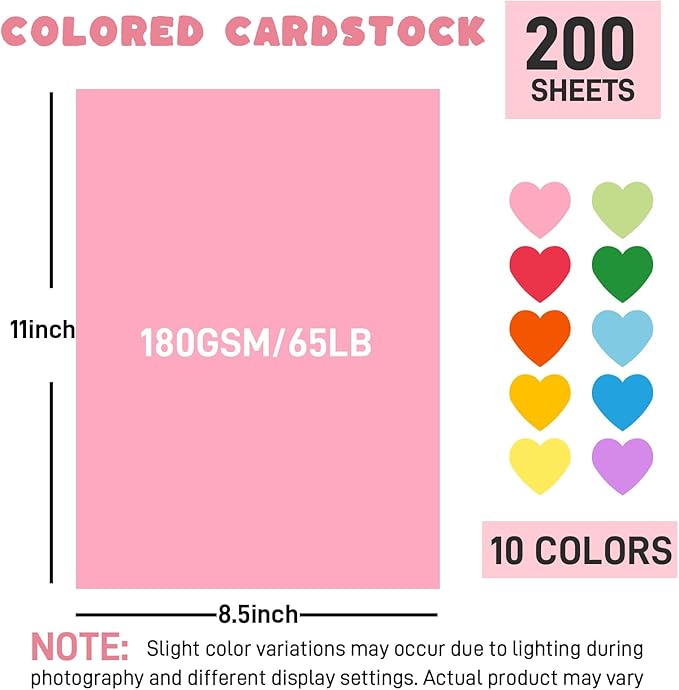 3 otters 200Sheets Construction Paper, Cardstock 8.5" x 11 ", 10 Assorted Colors Card Stock Printer Paper 65 lb/180 GSM, for Printing, DIY Craft, Kids School Supplies, Back to School, Party Decoration
