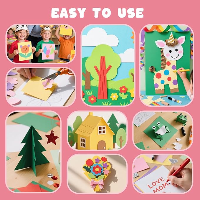 - [Fun for Family]: Perfect for family bonding, at-home learning, or craft time with kids. This construction paper set is also a practical choice for teacher back to school supplies, offering plenty of colorful sheets for classroom projects and creative teaching activities. Fun and functional for both home and school use