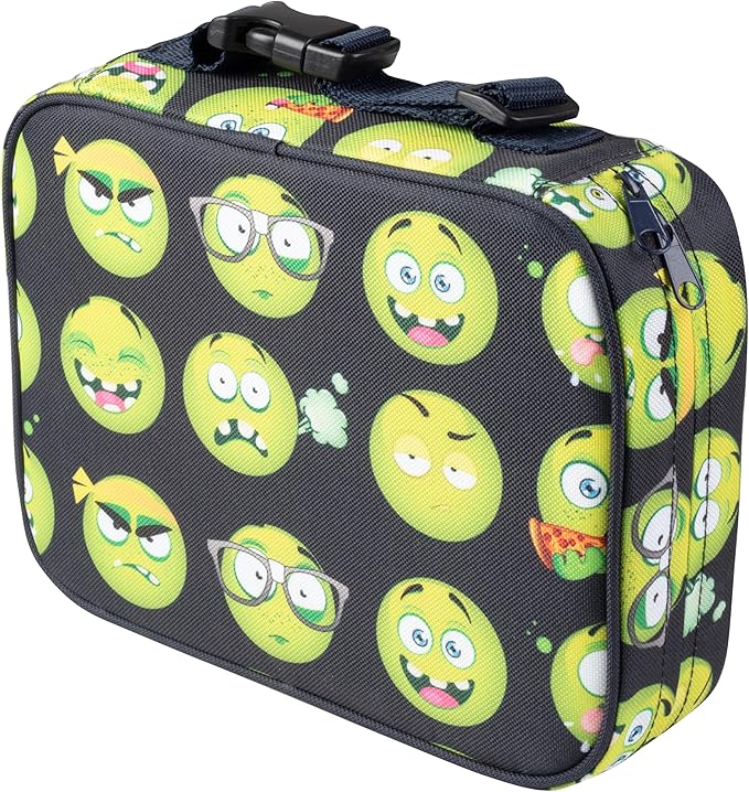 - Insulated Lunch Bag & Waterproof Lining: Kids will love this durable green emoji insulated lunch tote that keeps food and drinks fresh for hours! Ideal for bringing your lunch or snacks to School, Summer Camp, Daycare and more! Keep lunches mess free with this easy to wipe waterproof lining.