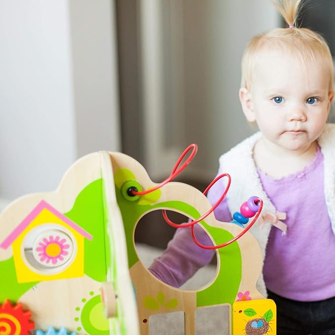 - Wooden tree-shaped playset with sensory and early-learning activities for toddlers to explore