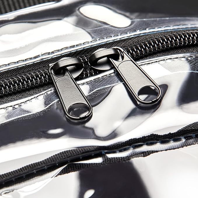 - Clear backpack for transporting school books and everyday gear; made of water-resistant PVC plastic