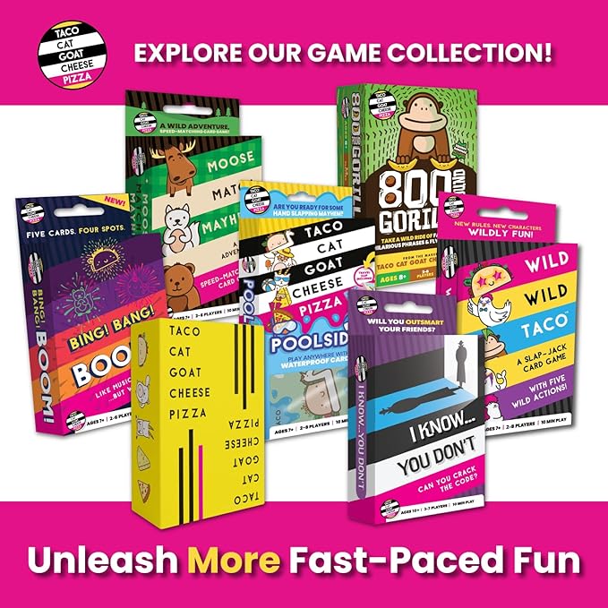 Taco Cat Goat Cheese Pizza Card Game – Wildly Entertaining & Easy To Learn - Great for Adults, Teens, Kids and Families - Card Games and Board Games for Family Game Night - 10 Min, Age 7+, 2-8 Players