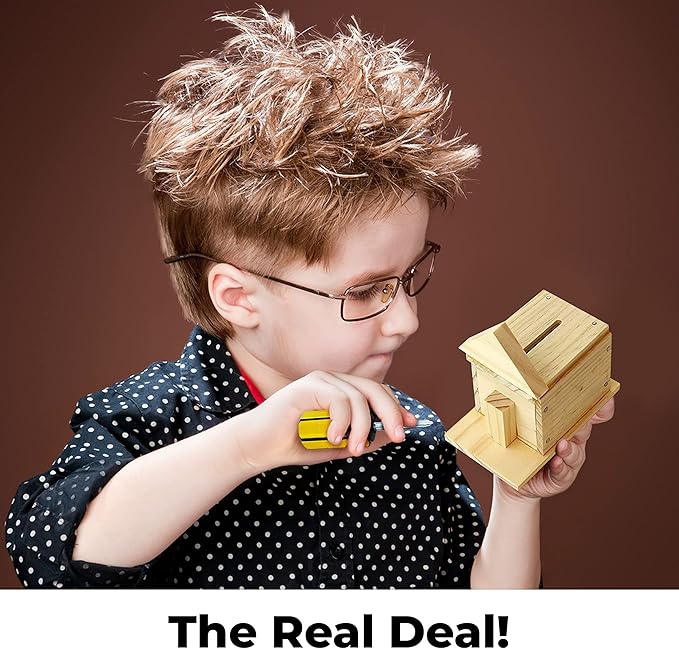 - Kit Includes: 80 pieces of real wood, 2 pencils, a ruler, nails, sandpaper, glue, a storage bag, a hammer and Paint and Paintbrushes