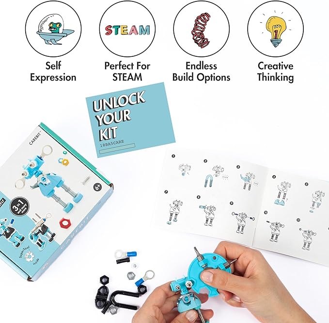 - Endless Creation with Real Nuts and Bolts: Build at least 3 out-of-the-box models with endless possibilities using the CareBit to build a robot stem kit! Each robot building kit contains enough parts to build a single model at a time, ensuring a focused and engaging building experience while helping young minds grow in the fields of Science, Technology, Engineering, Arts, and Math.
