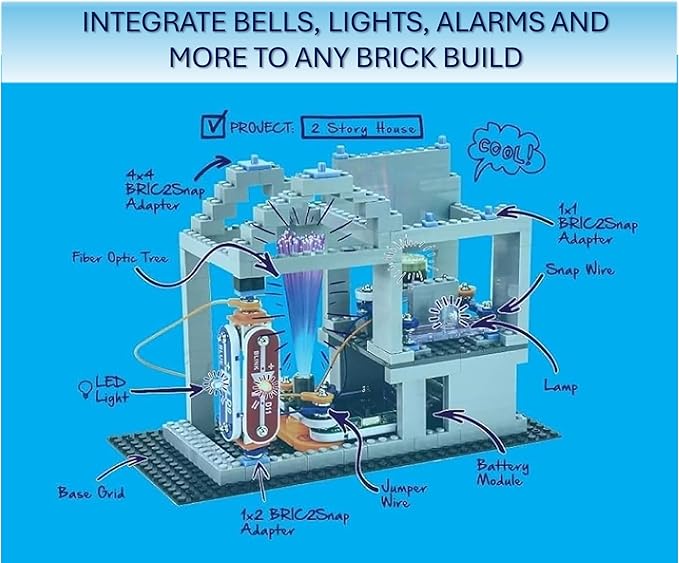- BUILD WITH BRICS Combine Snap Circuits with building bricks to create awesome combinations of construction and circuitry! With Bric-2-snap technology, kids can connect their builds with Snap Circuits lights, sounds, moving parts, and 3-D circuits to invent and make their projects go!