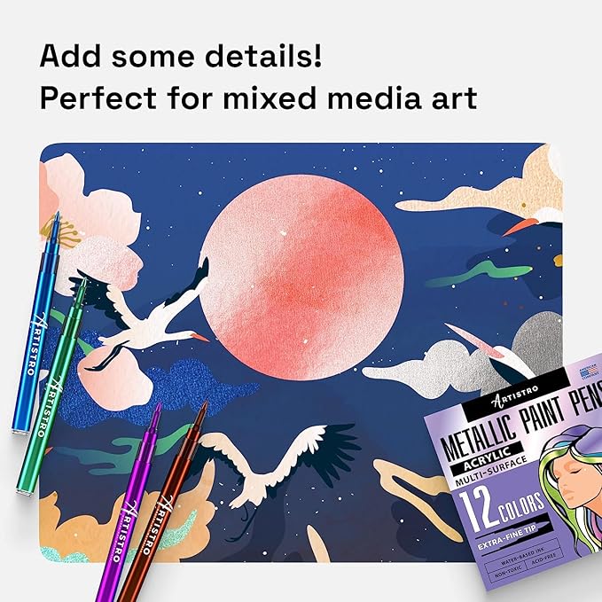 - Stunning Effect: Artistro metallic pens utilize vivid, acrylic ink that dries quickly to produce a very durable opaque and glossy finish on almost all surfaces. These metalic markers have a Japanese nib and Italian ink that’s water-resistant, heat-resistant, and flows without jamming or flooding.