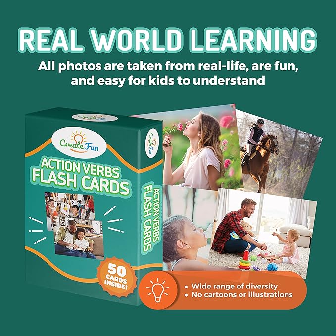 - FUN AND CREATIVE LEARNING - These adults and kids learning cards contain vivid and modern photos for better engagement. Our action learning cards are a fun and engaging way to learn verbs.