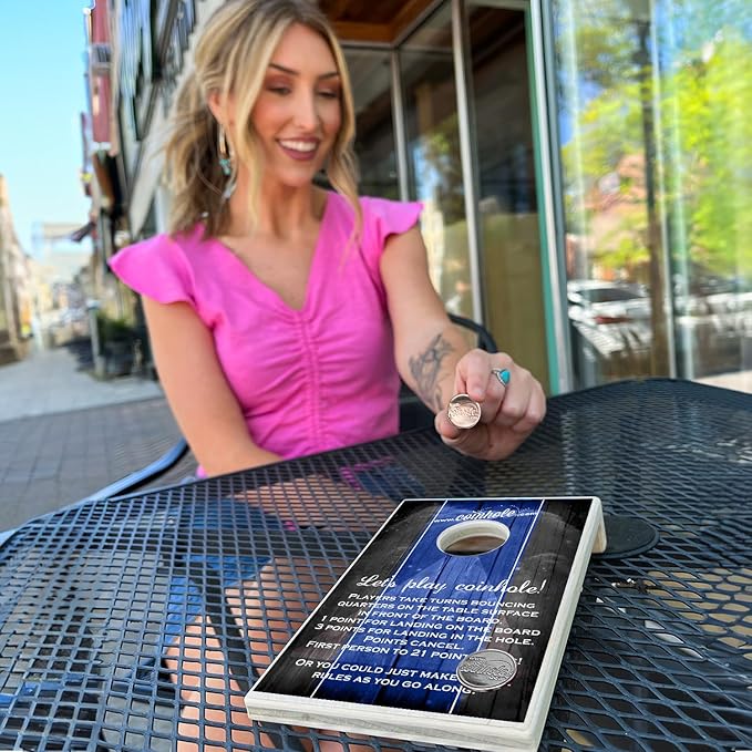 - Get the Party Started: Coinhole combines skill and game of chance in an exciting tabletop game the best gift for birthdays, bachelor & bachelorette parties, weddings and game nights. Enjoy endless fun at the office, home or on the road.