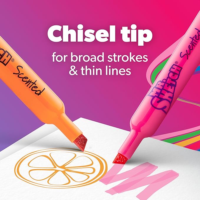 Mr. Sketch Scented Markers, Chisel Tip Marker, Assorted Colors, 22 Count