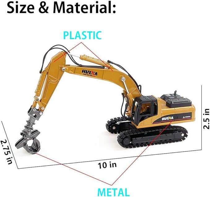 - SIZE AND MATERIAL -- Size of Box : approx 7.87"(L) * 2.36"(W) * 2.36"(H); It looks very big, It's more like a real Construction machinery;Material: Made of highest quality Zinc alloy, Able to withstand violent beatings from children.