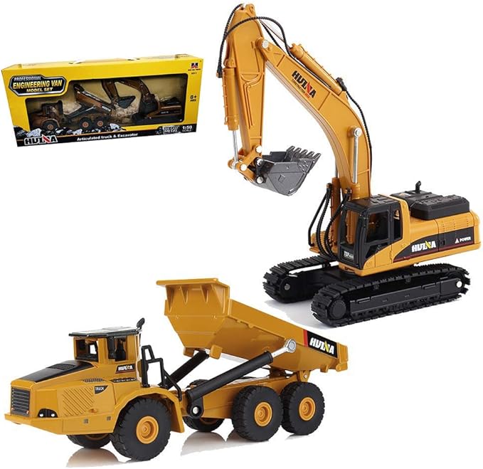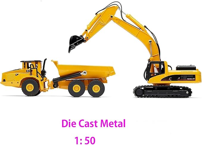 Ailejia 1/50 Scale Articulated Dump Truck Excavator Toy Alloy Models Construction Vehicle s Model Engineering Car Toy boy Gift (Engineering car Suit)