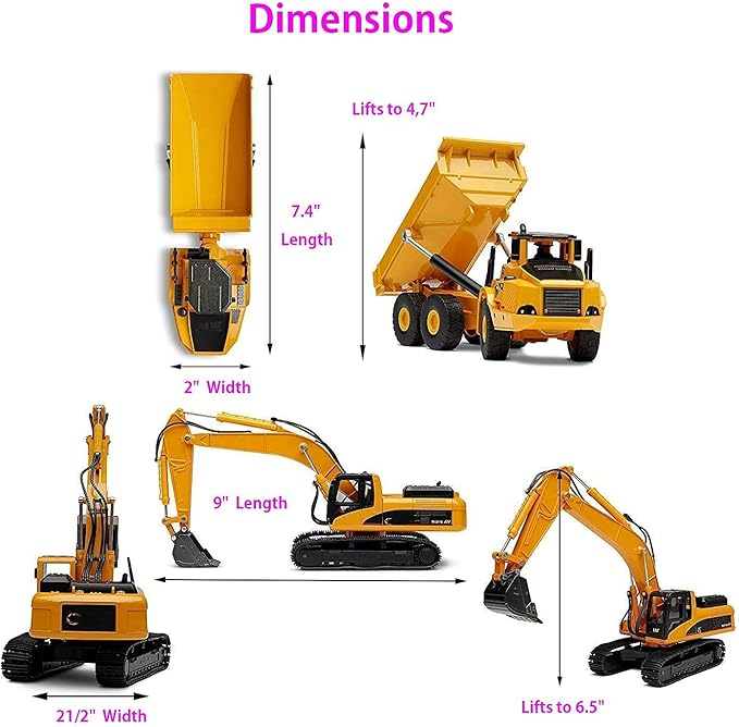 - Size of Box : approx 16.5"(L) * 3"(W) * 7"(H); It looks very big, It's more like a real Construction machinery;Material: Made of highest quality Zinc alloy abs (except for rubber tires), Able to withstand violent beatings from children.