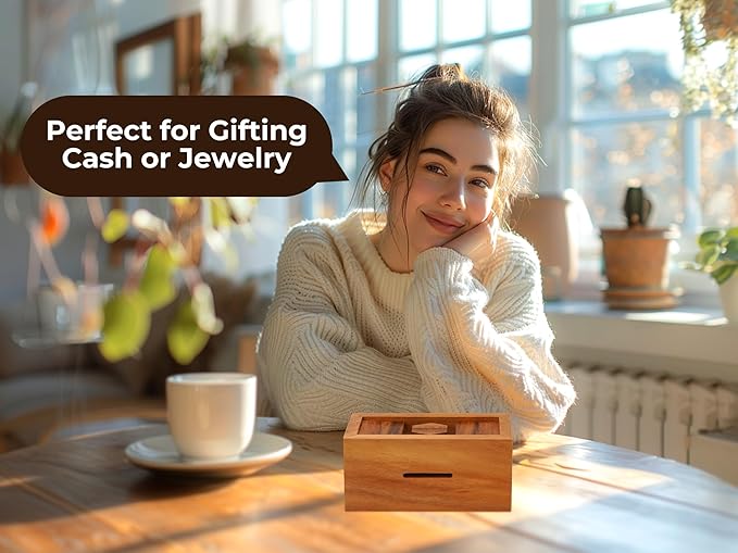 - Secure Your Stash: Safeguard your valuable items or surprise someone with a cash gift using the lockable compartments of this puzzle box. Keep your money, jewelry, or gift cards hidden and secure. Make them wonder what in the magic puzzle box.