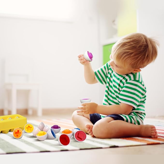 Tinabless Matching Eggs Toys 12 pcs Set Color & Shape Recoginition Sorter Puzzle for Toddlers, Christmas Easter Travel Game Early Learning Educational Gift for Year Old Kids