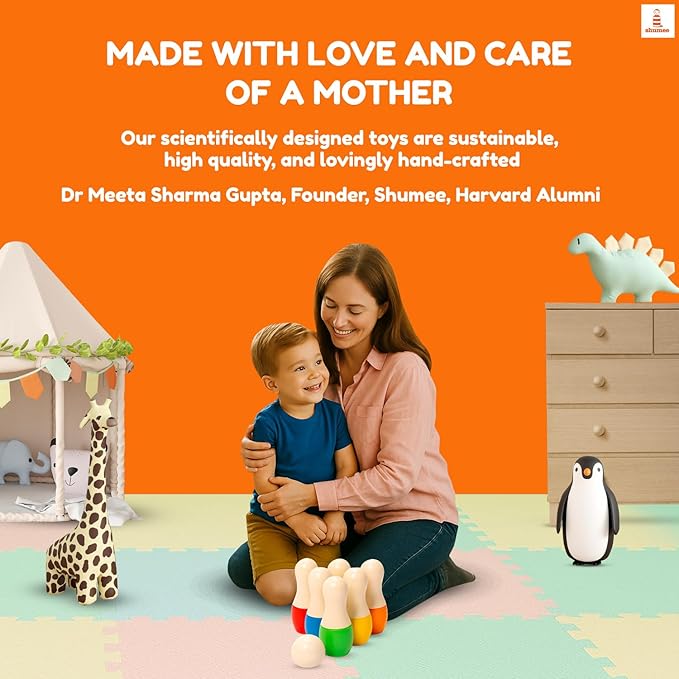 Shumee Montessori Wooden Kids Bowling Set 2+ Years, Eco-Friendly Toddler Bowling Sets with 6 Pins & Ball, Indoor/Outdoor Bowling Set for Kids, Muscle & Brain Development, 100% Child-Safe Toy