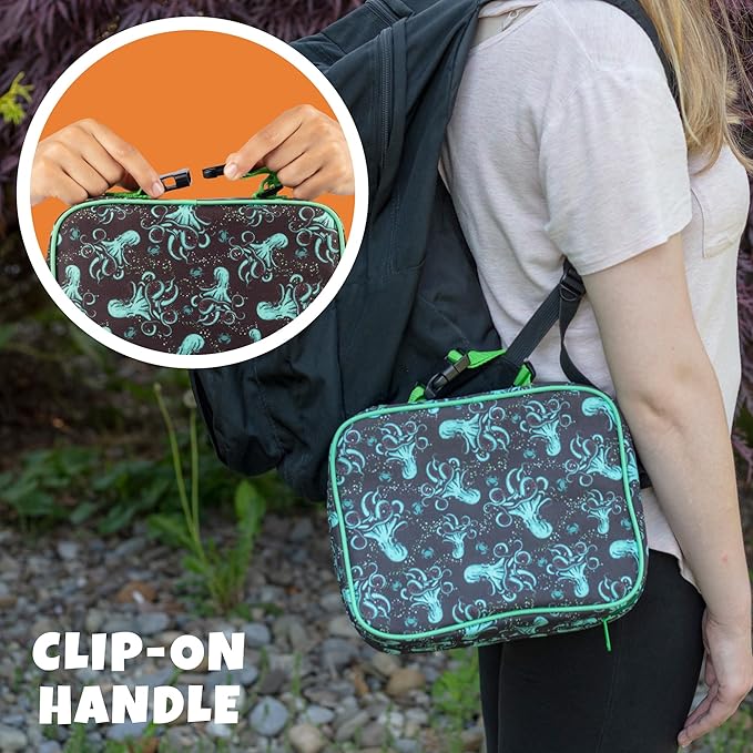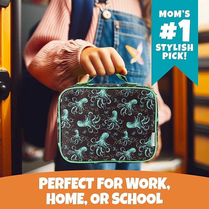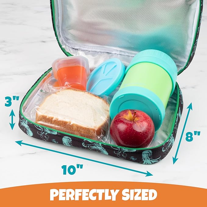 - INSULATED LUNCH BAG & WATERPROOF LINING: Kids will love this durable aquatic octopus print Bentology insulated lunch tote that keeps food and drinks fresh for hours! Ideal for bringing your lunch or snacks to School, Summer Camp, Daycare and more! Keep lunches mess free with this easy to wipe waterproof lining.