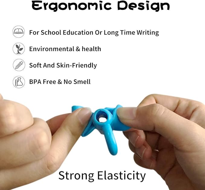 - 【EASY TO USE,FOR RIGHTIES AND LEFTIES】pencil grip can be used by righties and lefties,These training pencil holders have two holes that can fix the thumb and index finger, allowing your child to hold their pencil the right way preventing skin irritation and blisters.