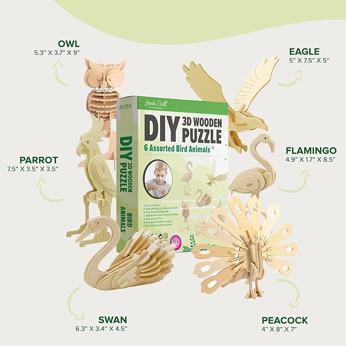 - Bundle of Bird Puzzles: This captivating set includes Parrot, Eagle, Peacock, Flamingo, Owl, and Swan. No tools or glue are required for assembly. Perfect for bird lovers and puzzle enthusiasts.