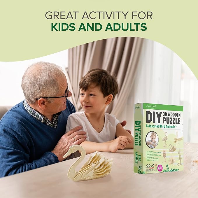 - 3D Wooden Puzzle Collection: Diverse shapes of beautiful birds. DIY assembly promotes mental stimulation. Ideal for ages 8+. Quiet activity perfect for family bonding time.