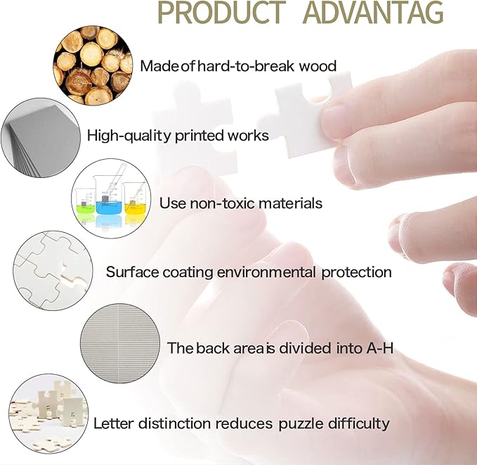 - Letter Hints on the Back - Letters A-H are printed on the back of the puzzle as a helpful hint, so you can rely on it to quickly find the right piece to reduce the difficulty of the puzzle.