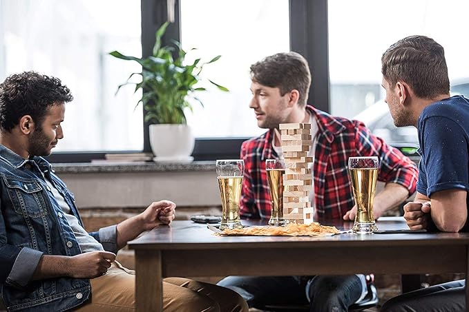 - PARTY GAME: Whether it is with friends in the bar or family in your living room, this classic game has entertained happy people around the world for decades. The durable blocks and wooden storage case are sure to last for years to come.