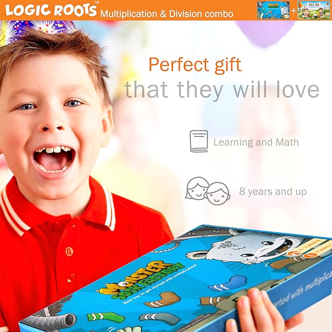 - EXCITING MULTIPLICATION AND DIVISION COMBO - The pack includes two fun math board games. In Pet Me, kids go on a adventure to feed dogs, cats and parrots whereas in Monster Sock Factory, kids help monsters dispatch warm socks in snow filled valley. They will master multiplication and division facts along the way.