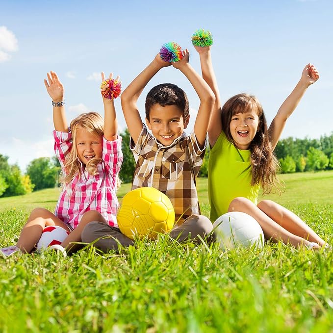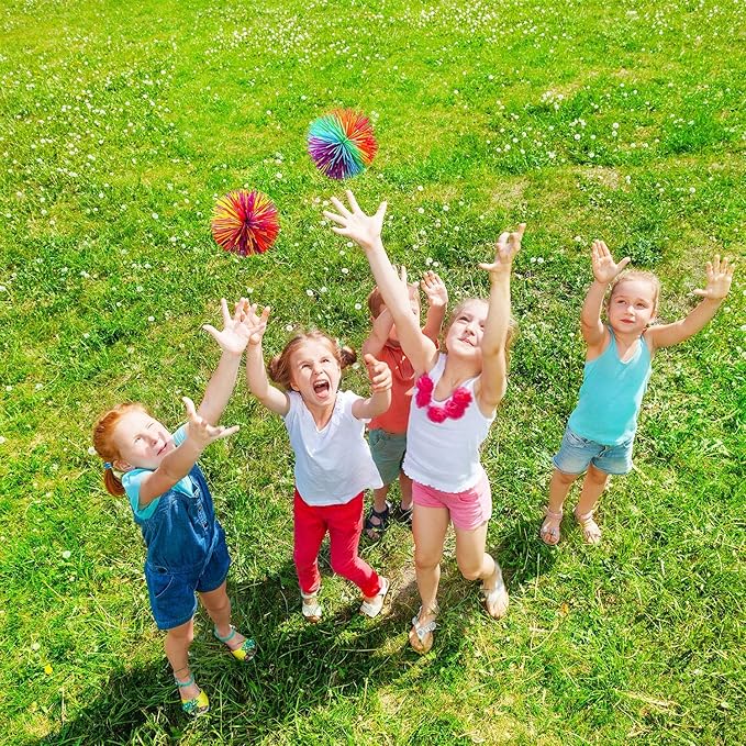 - Measurement: the diameter of the stringy ball is approx. 2.75 inch, proper size for palm, and good weight to play, rainbow color with silicone touch can bring unlimited fun for you, also is a great goodie bag for party and good gift for families and friends