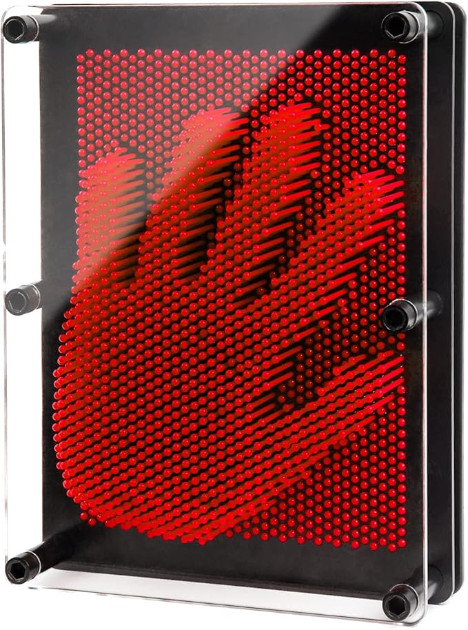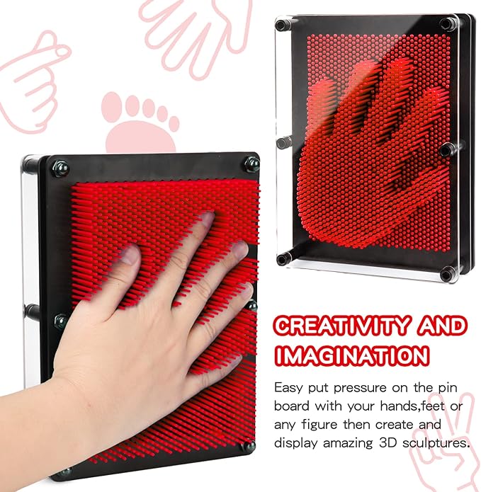 - Pin Toy Features: Unique plastic pin board toy is different from metal pin impression toy; Our hand pin toy is lighter than other impression toy; Anytime you want to make a new print you place it horizontally and the pins toy is back the way it was