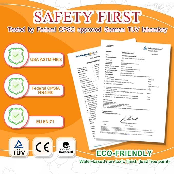 - ๐ Tested by federal CPSC approved German TUV laboratory. Satisfies US Federal and European toy safety standards. (CPSIA HR4040, ASTM-F963, EN-71)