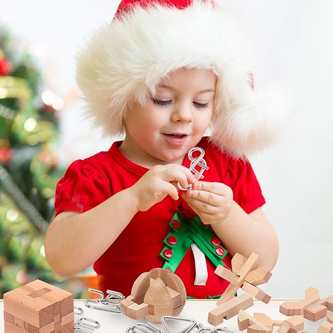 - ๐3D Coil Cast and Wooden Blocks Logic Educational Wire Chain with Plastic Storage Box and Solutions - Great gift for boys, girls, men, and women ages 5 to 105. The perfect size makes it easy for small and large hands to play comfortably. Everyone can enjoy these unique novelty gifts, from children, teens, and adults. CAn be played by a single player or a group. Give as gifts for birthdays, Halloween, Christmas, as well as party favors. Caution, not suitable for kids 5 years old and below.