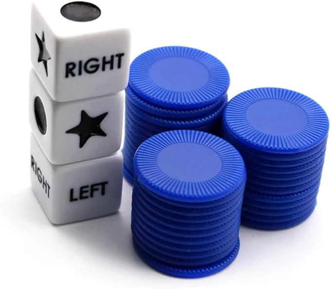- Nice Design : Dices with 4 signs in each tube - "Left", "★"(Center), "Right" and "●"(Dot)
