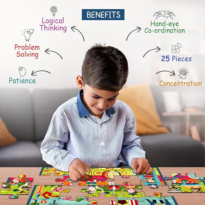 - FUN & EDUCATIONAL - This 25 piece puzzle is the perfect way to develop problem solving skills while having fun. Also jumbo pieces are designed in a way to help children develop their hand-eye coordination skills.
