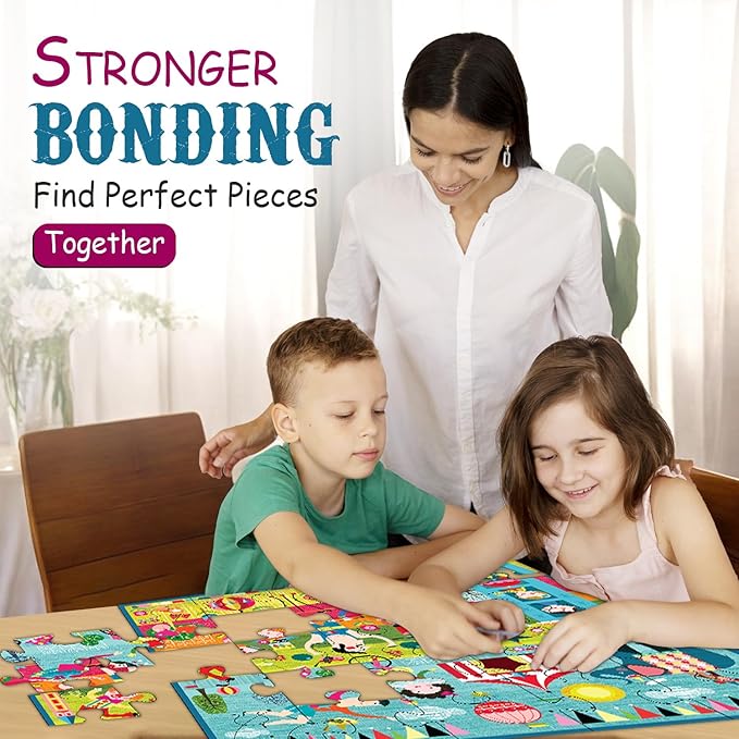 - TODDLER JUMBO PIECE PUZZLE - Our Jumbo Toddler Circus Jigsaw Puzzle is the perfect way to keep your child entertained and engaged. Our jumbo puzzle pieces are large and sturdy, making them easy to hold and less likely to get missed. Moreover, Kids would be able to join the puzzle while looking at the image printed inside the box for easy assembly. The completed puzzle measures 22” x 22”in size.