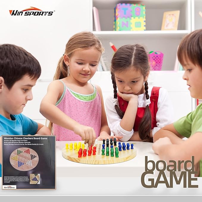 - ★Chinese Checkers with Wooden Pegs : Our Chinese Checkers board is made from Natural Wood and sports an 11.5" diameter,making it the perfect size for most tables.The 60 pegs fit nicely into the 60 holes.Win SPORTS Chinese Checkers Game aren’t loose like the games that use marbles, so the pegs stay placed exactly where you set them on the game board and will not roll away!