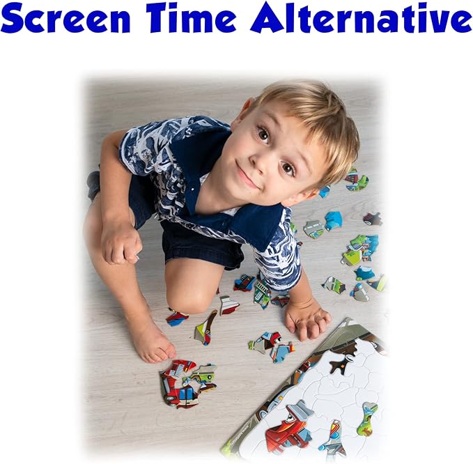 - ✅ UNIQUE JIGSAW PUZZLE SHAPES – Not your ordinary jigsaw puzzle pieces, these come in fun and exciting shapes such as fire hydrant, airplane, car, star, dog, ambulance, kangaroo and more! Your child or toddler will quickly learn to identify new shapes and recognize patterns. One of the best children puzzles on the market.