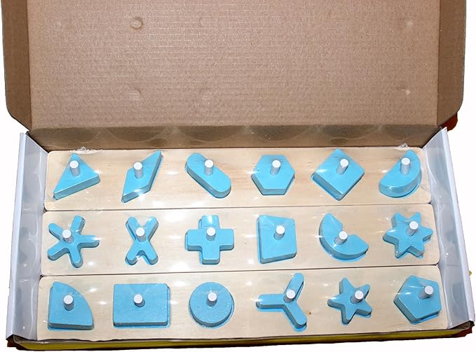 - GAME. There are 3 sticks, with 6 different shapes each. totaling 18 different shapes. Depending on the persons ability they can play with 1, 2, or 3 sticks. Younger people might also like to try speed sorting
