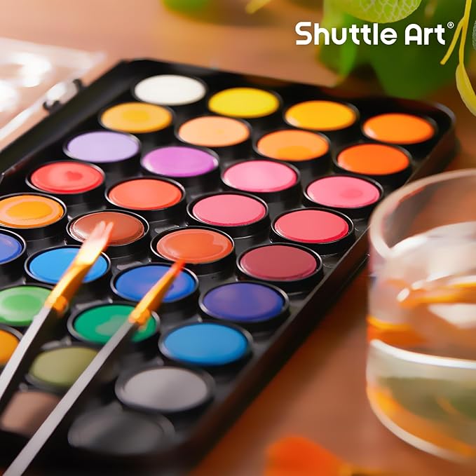 - PORTABLE CASE: Shuttle Art 48 colors watercolor paint set comes in a lightweight and sturdy plastic box makes it easy for storage and carrying. The removable cover also work as a palette and is easy to clean