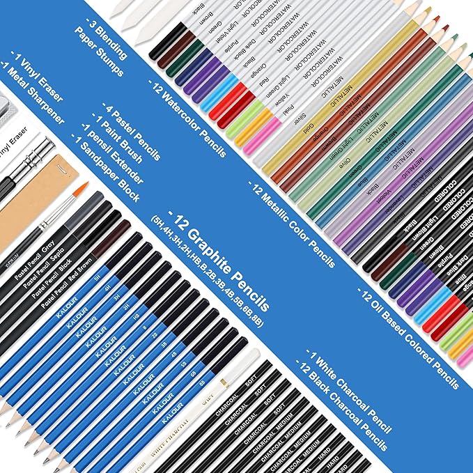 - Complete Professional Drawing and Sketching Art Set - Kalour 76 art set contains all the art pencils you need,Variety of pencil types and Vivid Color for you to do any artworks.Perfect for sketching,drawing,blending,coloring and shading.