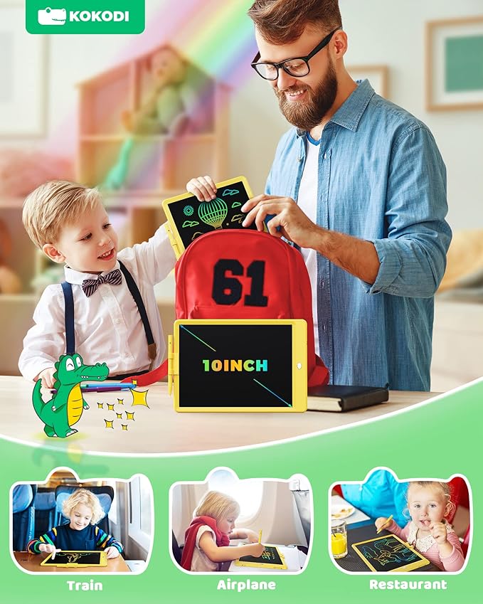 KOKODI LCD Writing Tablet, 10 Inch Colorful Toddler Doodle Board Drawing Tablet, Erasable Reusable Electronic Drawing Pads, Educational and Learning Toy for 3-6 Years Old Boy and Girls
